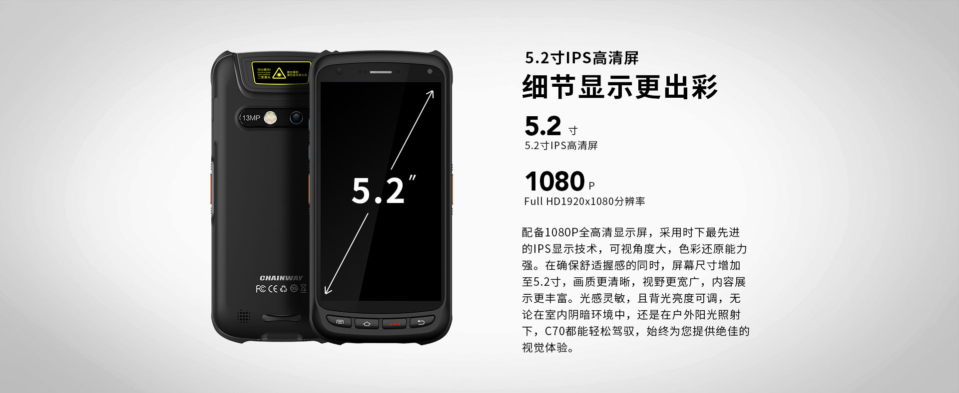 深圳成為C70工業級手持終端是精心打造的一款便攜式超薄智能手持終端。輕薄機身搭配5.2英寸全高清屏,移動便攜,握持舒適。可選配高性能條碼掃描、準確NFC等豐富功能,同時具有工業級超強防護性能,廣泛適用于快遞、物流、倉儲、生產制造、零售等多個行業領域,幫助用戶快速實現信息化管理,提高工作效率。