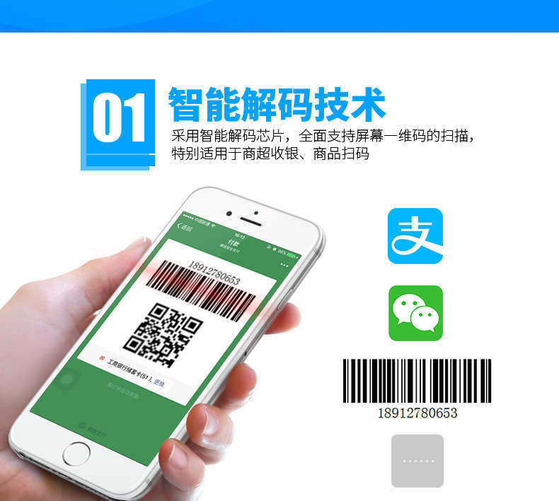 一把槍同時搞定商品碼和手機屏幕碼,讓您掃碼、支付、營銷三管齊下。